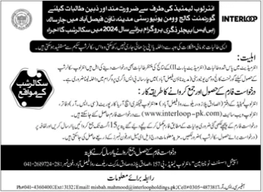 Application forms can be obtained from After completing the form according to the necessary instructions written on the envelope of the application form, submit it or send Interloop Scholarship 2024 by August 15 and write the application for scholarship) on the envelope. More information can be obtained through email and phone numbers.